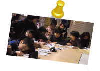 ![]() 塾で作ったしおりに、一生懸命実験の様子をメモしています |