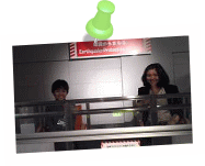 ![]() 震度を体感できる装置に乗った2人。東日本大震災のおそろしさを感じられたでしょうか。 |