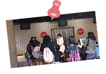 ![]() 静電気の実験の様子。みんな真剣に観察していました。 |