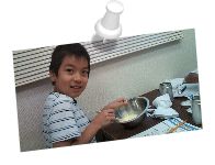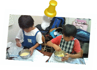 ![]() 先生お手製プリントを見ながら、卵をまぜています! |